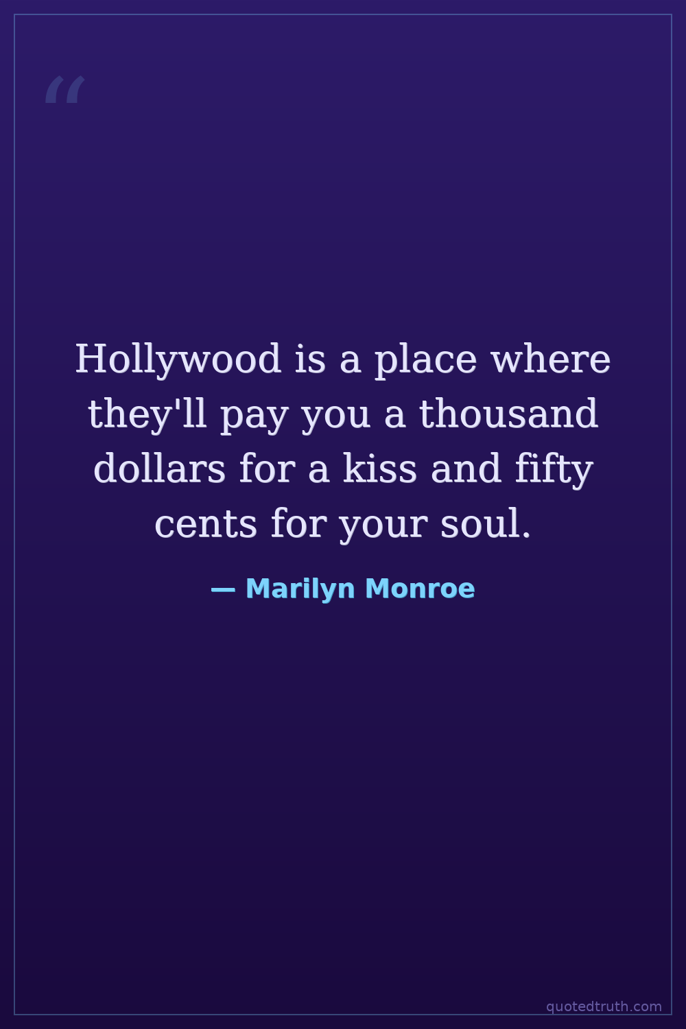 Hollywood is a place where they'll pay you a thousand dollars for a kiss and fifty cents for your soul.