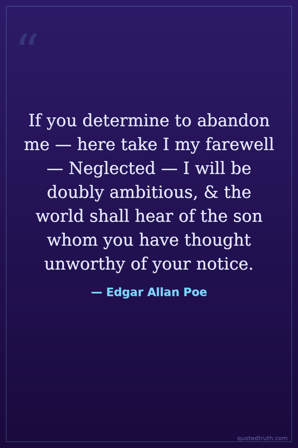 If you determine to abandon me — here take I my farewell — Neglected — I will be doubly ambitious, & the world shall hear of the son whom you have thought unworthy of your notice.