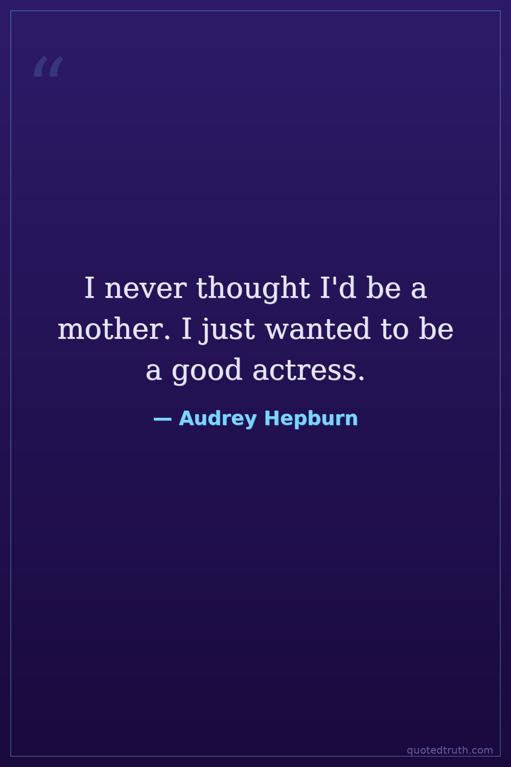 I never thought I'd be a mother. I just wanted to be a good actress.