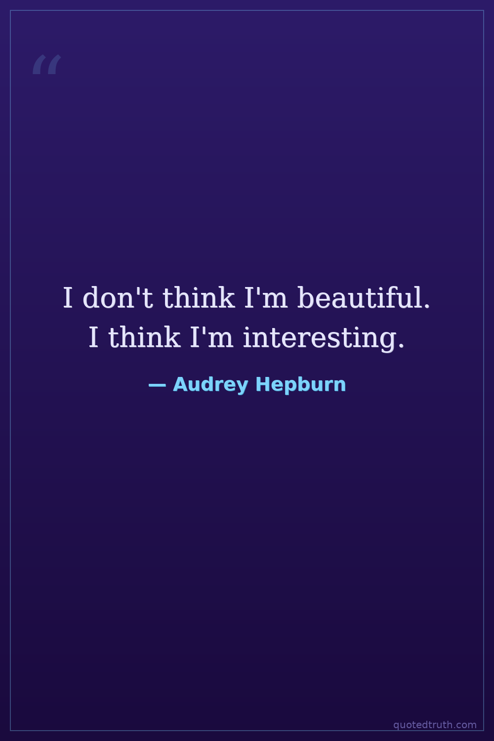I don't think I'm beautiful. I think I'm interesting.