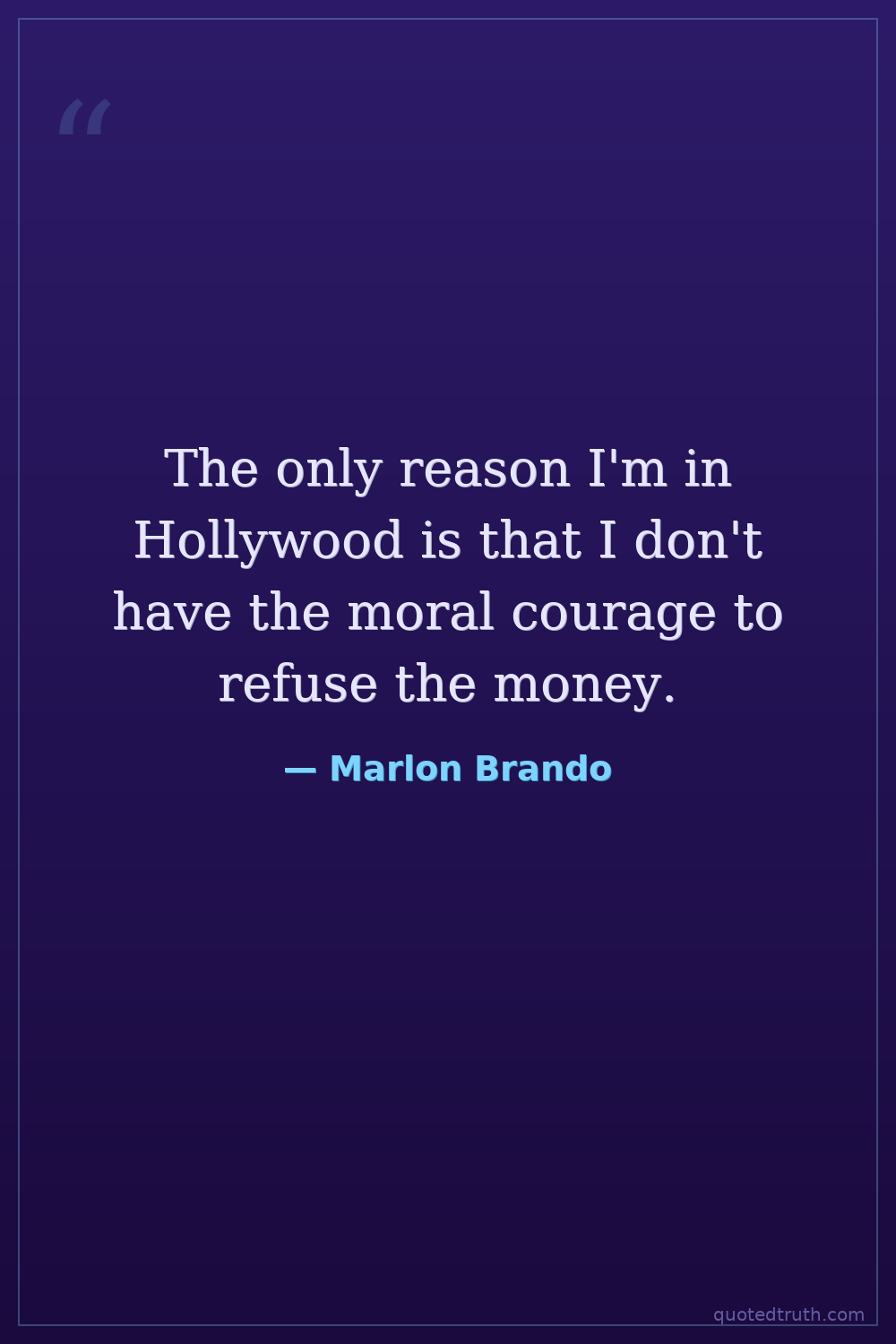 The only reason I'm in Hollywood is that I don't have the moral courage to refuse the money.