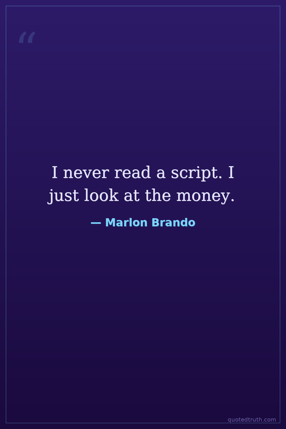 I never read a script. I just look at the money.