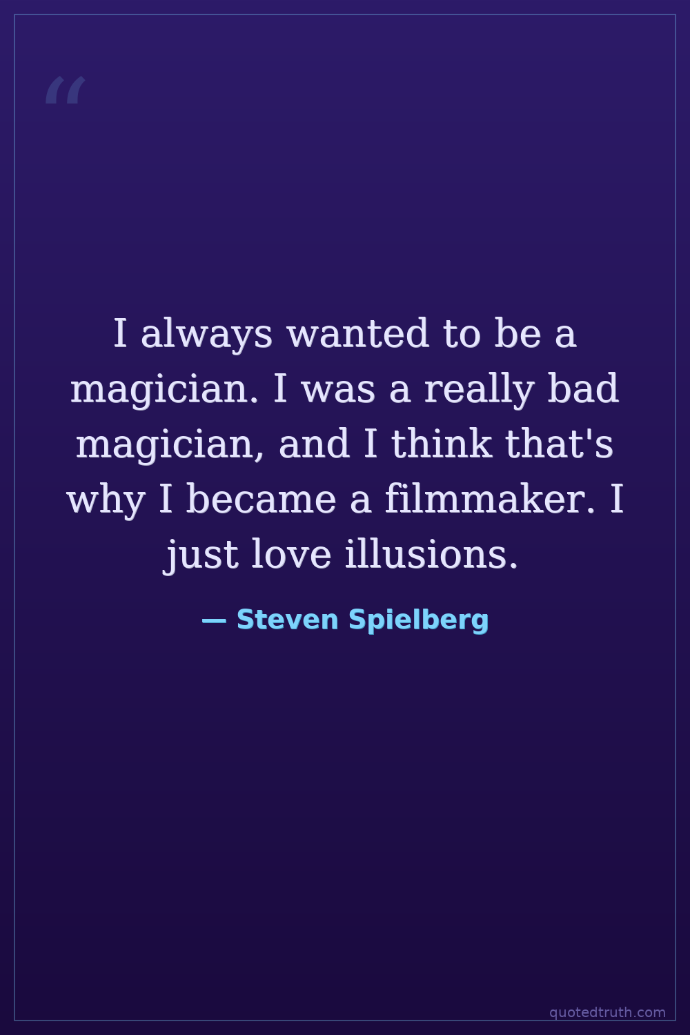 I always wanted to be a magician. I was a really bad magician, and I think that's why I became a filmmaker. I just love illusions.