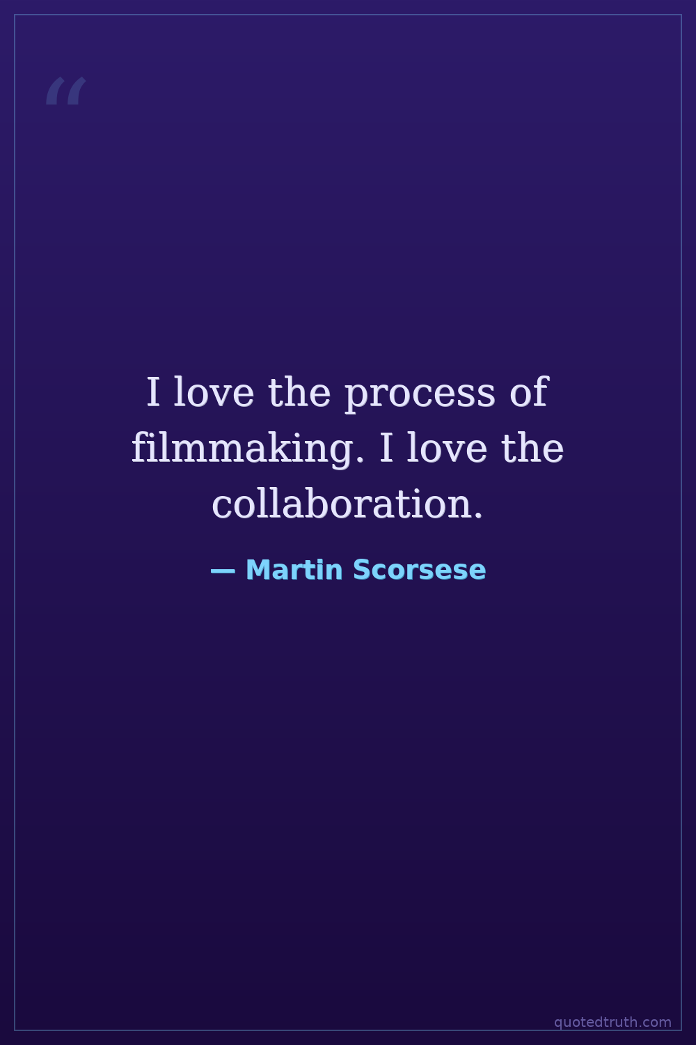 I love the process of filmmaking. I love the collaboration.
