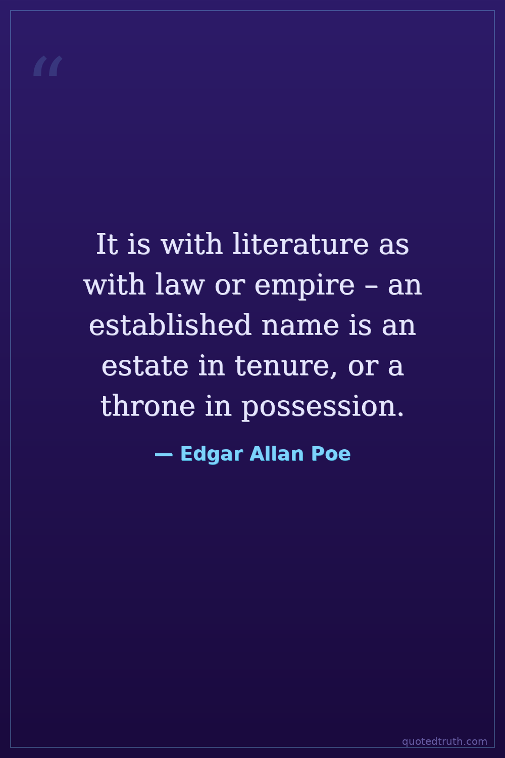 It is with literature as with law or empire – an established name is an estate in tenure, or a throne in possession.