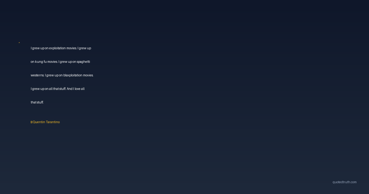 I grew up on exploitation movies. I grew up on kung fu movies. I grew up on spaghetti westerns. I grew up on blaxploitation movies. I grew up on all that stuff. And I love all that stuff.