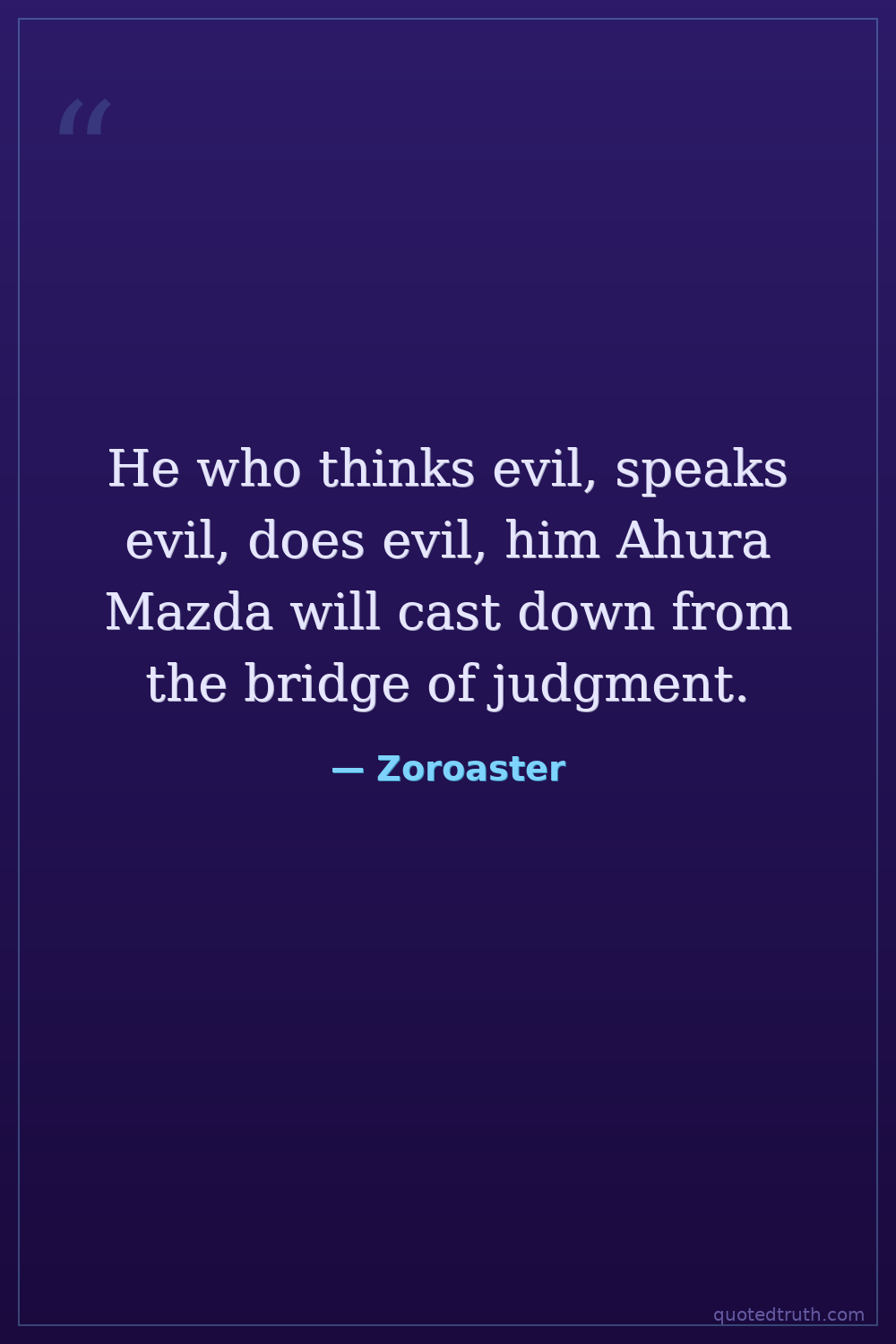 He who thinks evil, speaks evil, does evil, him Ahura Mazda will cast down from the bridge of judgment.