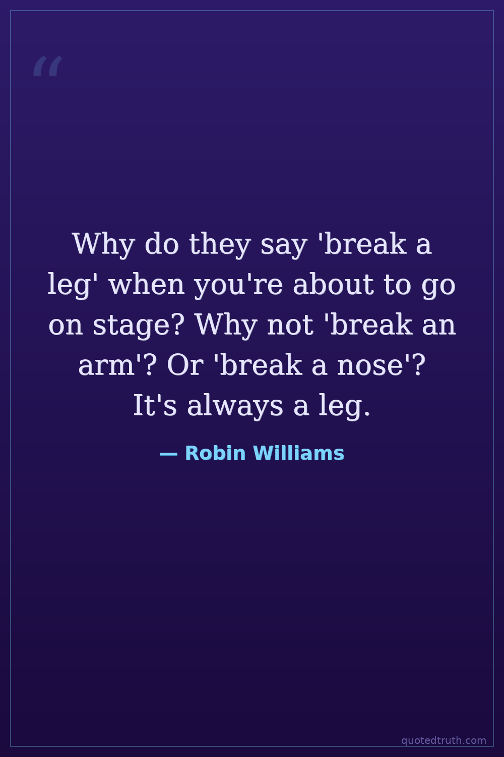 Why do they say 'break a leg' when you're about to go on stage? Why not 'break an arm'? Or 'break a nose'? It's always a leg.