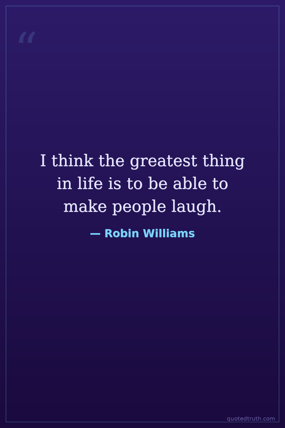 I think the greatest thing in life is to be able to make people laugh.