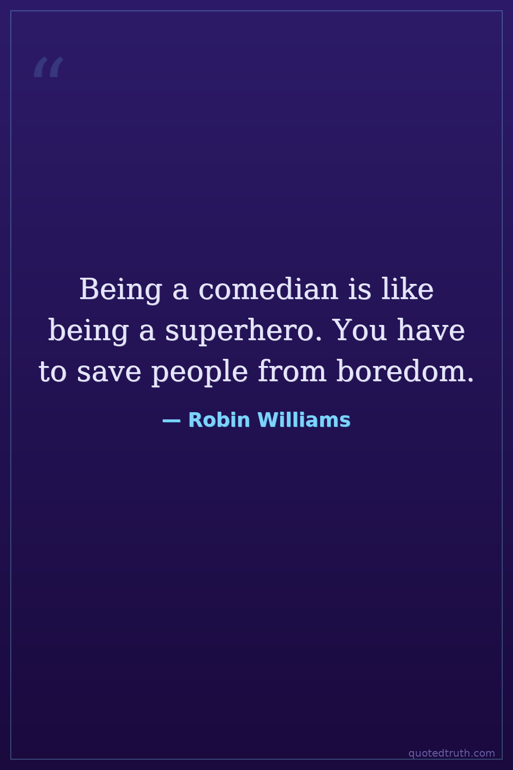 Being a comedian is like being a superhero. You have to save people from boredom.