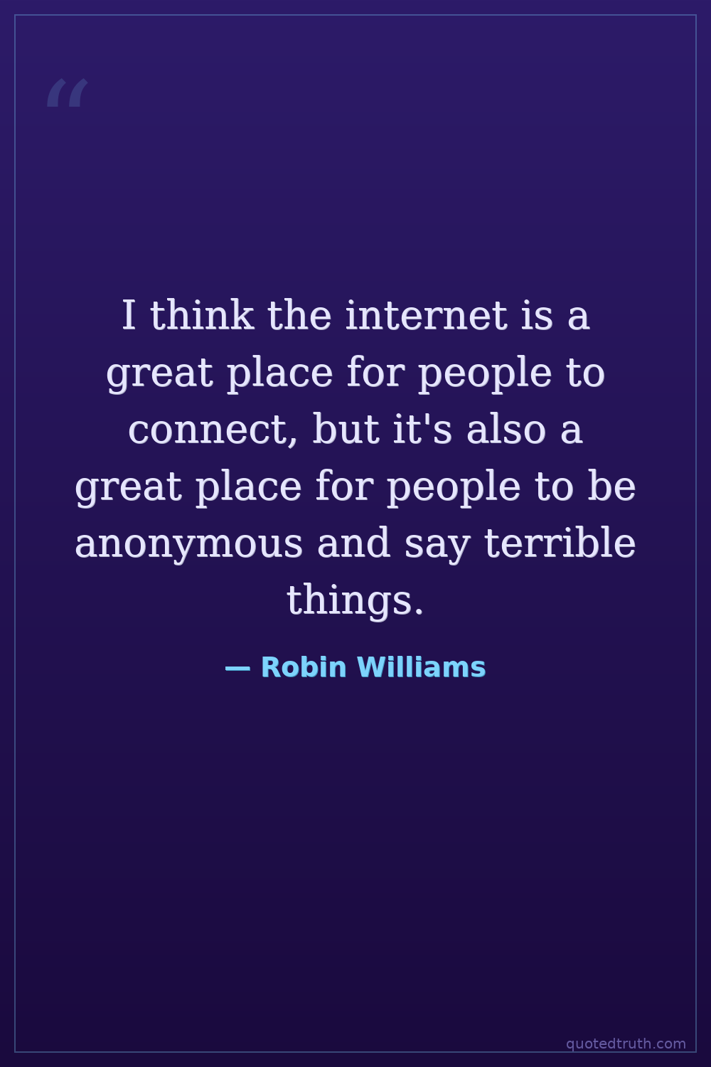 I think the internet is a great place for people to connect, but it's also a great place for people to be anonymous and say terrible things.
