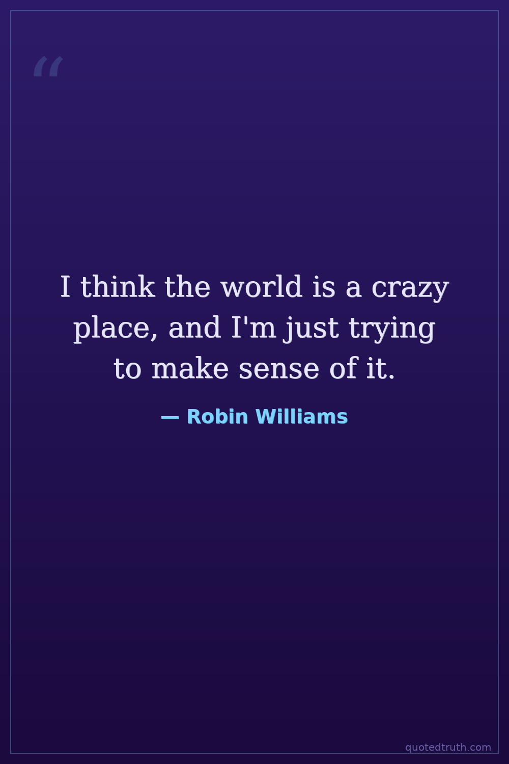 I think the world is a crazy place, and I'm just trying to make sense of it.