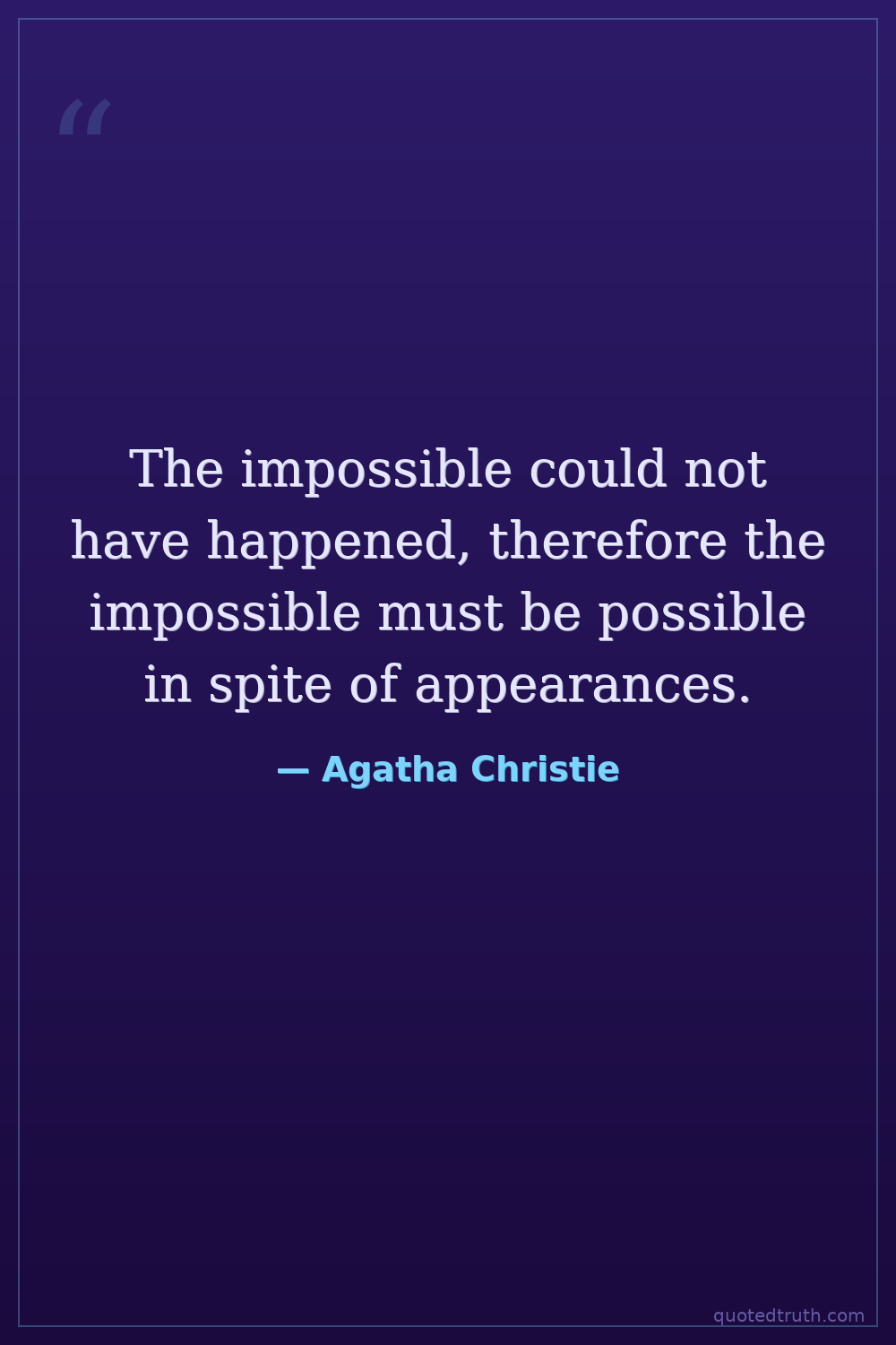 The impossible could not have happened, therefore the impossible must be possible in spite of appearances.