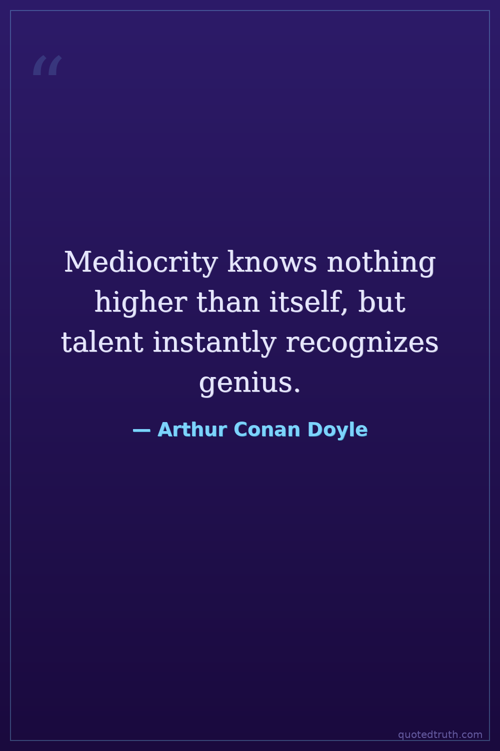 Mediocrity knows nothing higher than itself, but talent instantly recognizes genius.