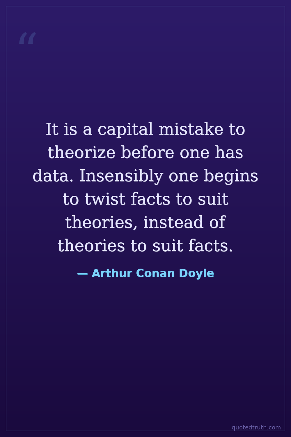 It is a capital mistake to theorize before one has data. Insensibly one begins to twist facts to suit theories, instead of theories to suit facts.