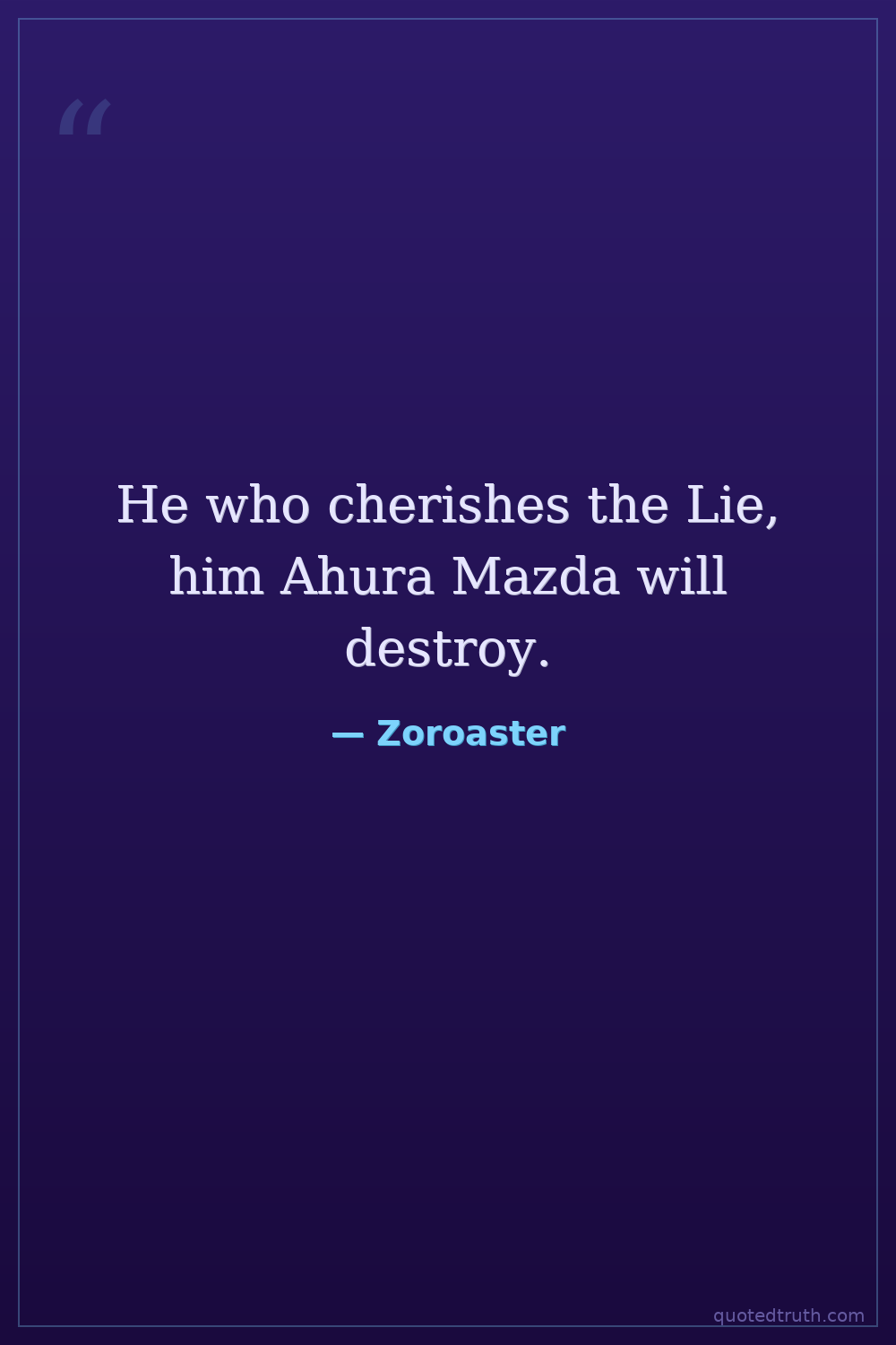 He who cherishes the Lie, him Ahura Mazda will destroy.