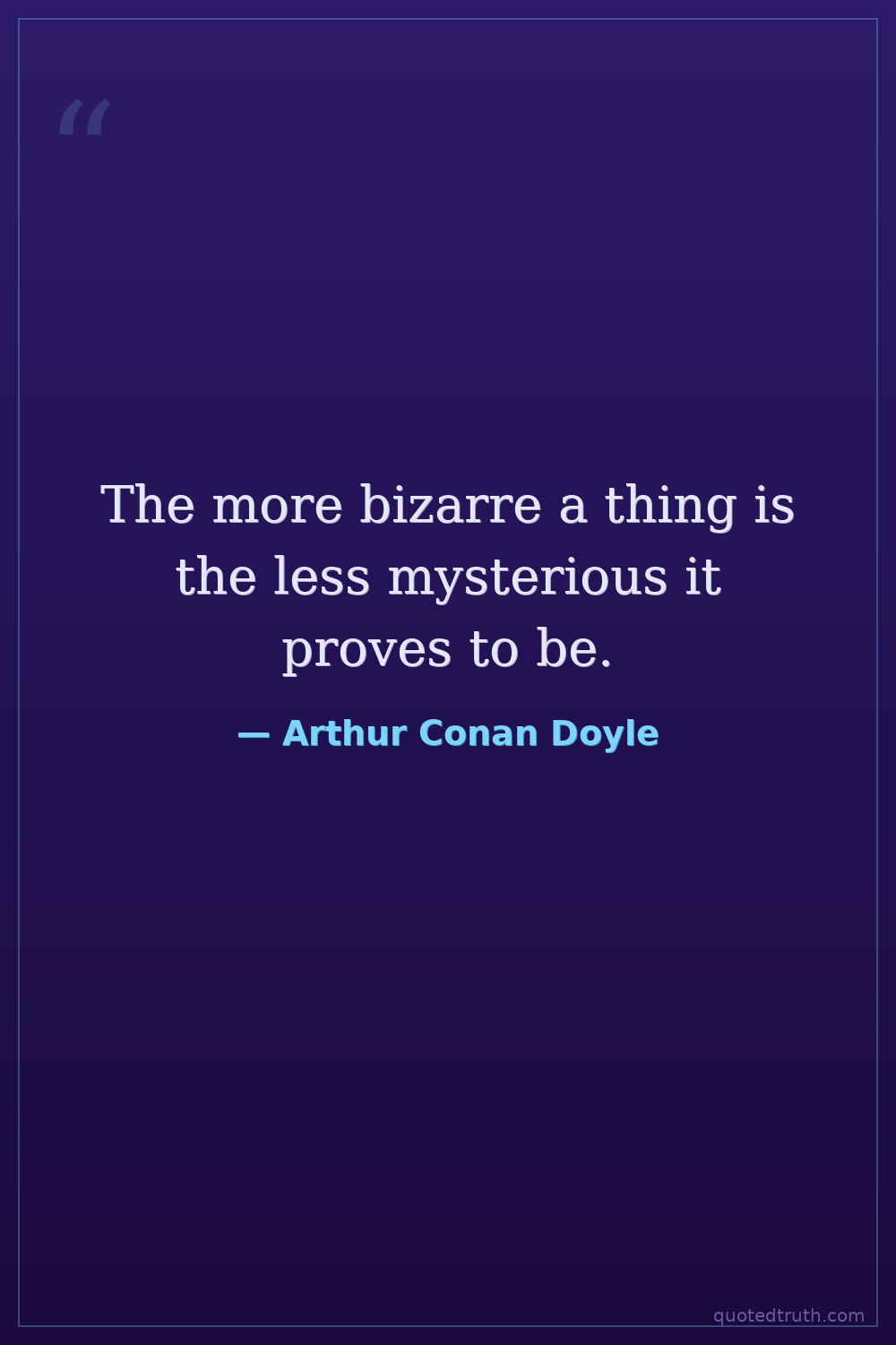 The more bizarre a thing is the less mysterious it proves to be.