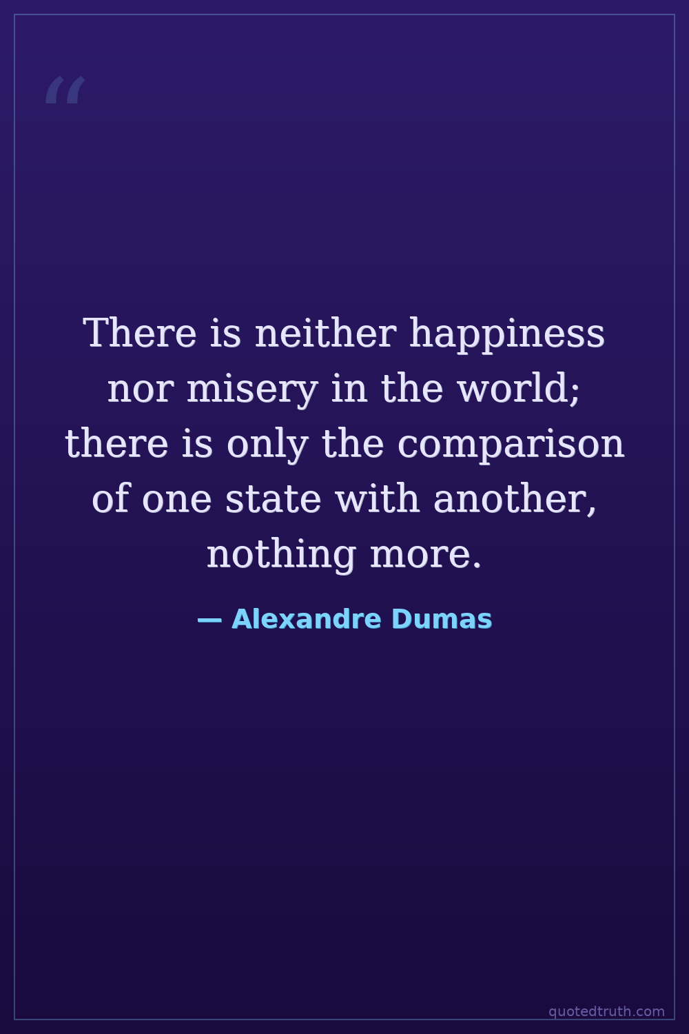 There is neither happiness nor misery in the world; there is only the comparison of one state with another, nothing more.