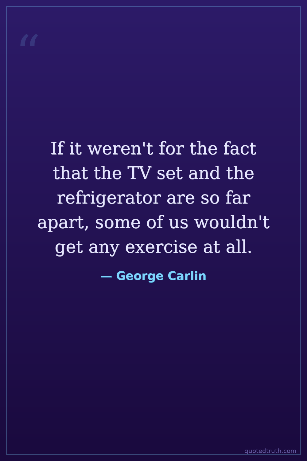 If it weren't for the fact that the TV set and the refrigerator are so far apart, some of us wouldn't get any exercise at all.