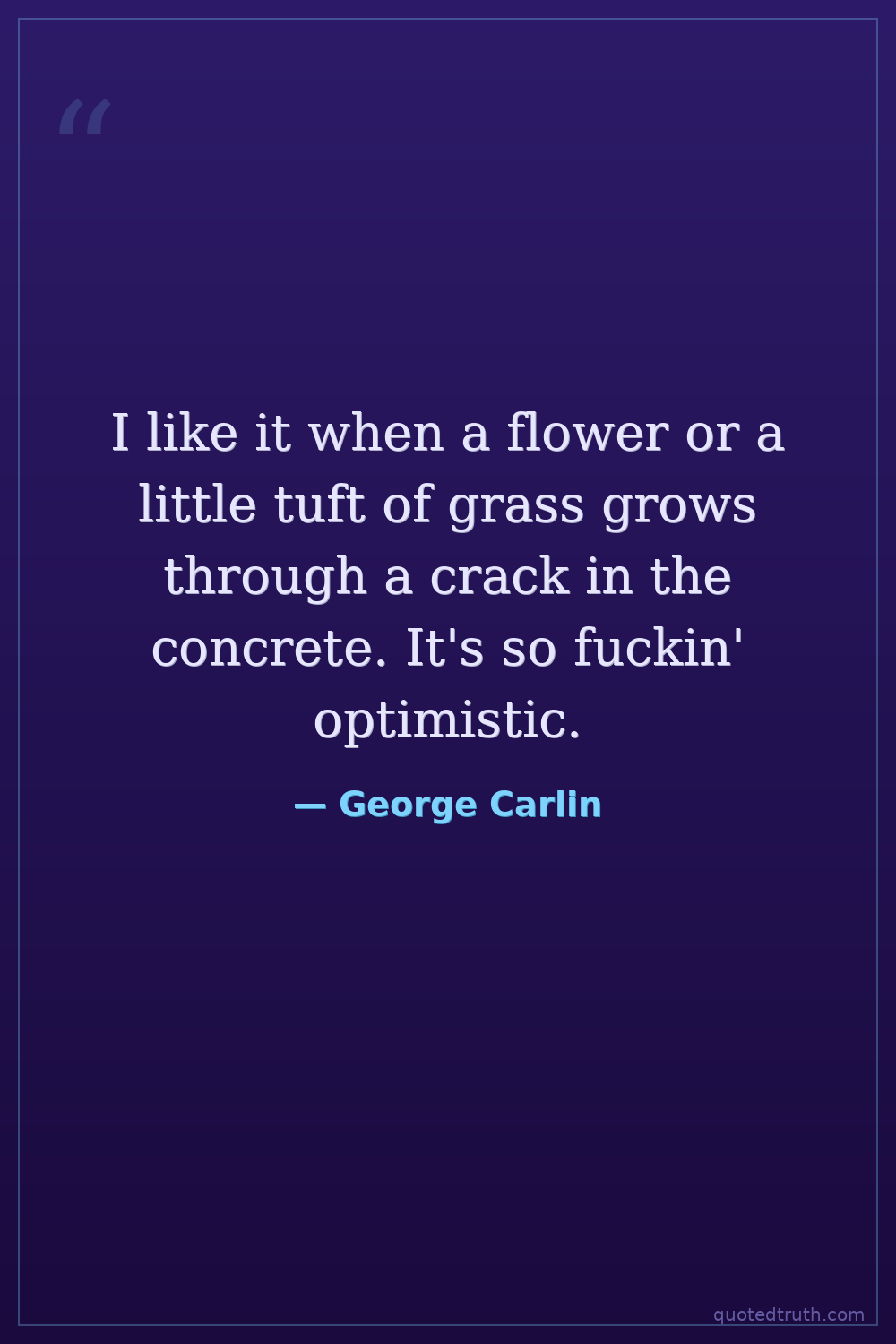 I like it when a flower or a little tuft of grass grows through a crack in the concrete. It's so fuckin' optimistic.