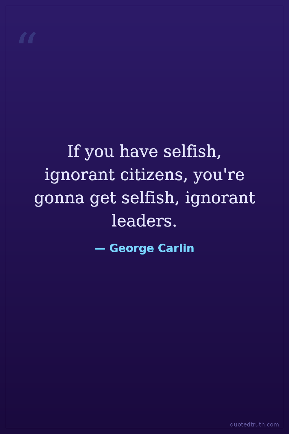 If you have selfish, ignorant citizens, you're gonna get selfish, ignorant leaders.