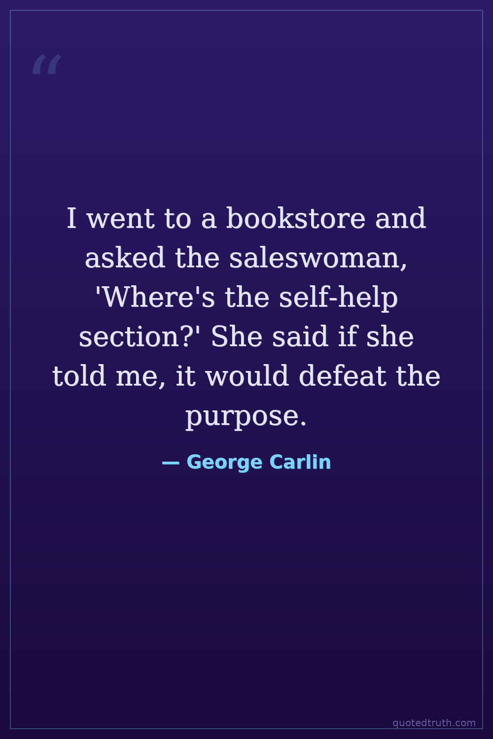 I went to a bookstore and asked the saleswoman, 'Where's the self-help section?' She said if she told me, it would defeat the purpose.