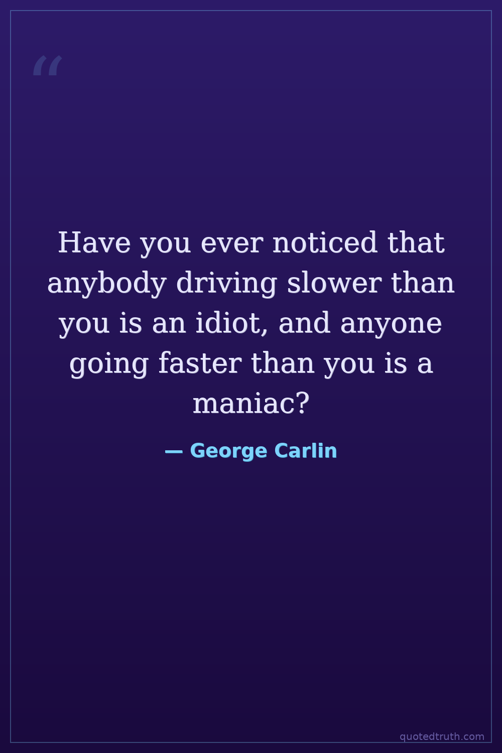 Have you ever noticed that anybody driving slower than you is an idiot, and anyone going faster than you is a maniac?