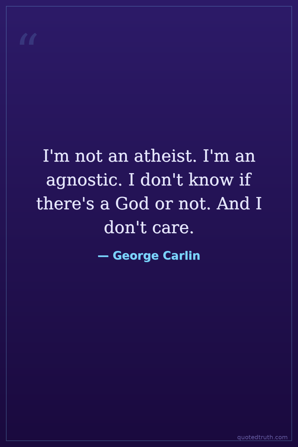I'm not an atheist. I'm an agnostic. I don't know if there's a God or not. And I don't care.