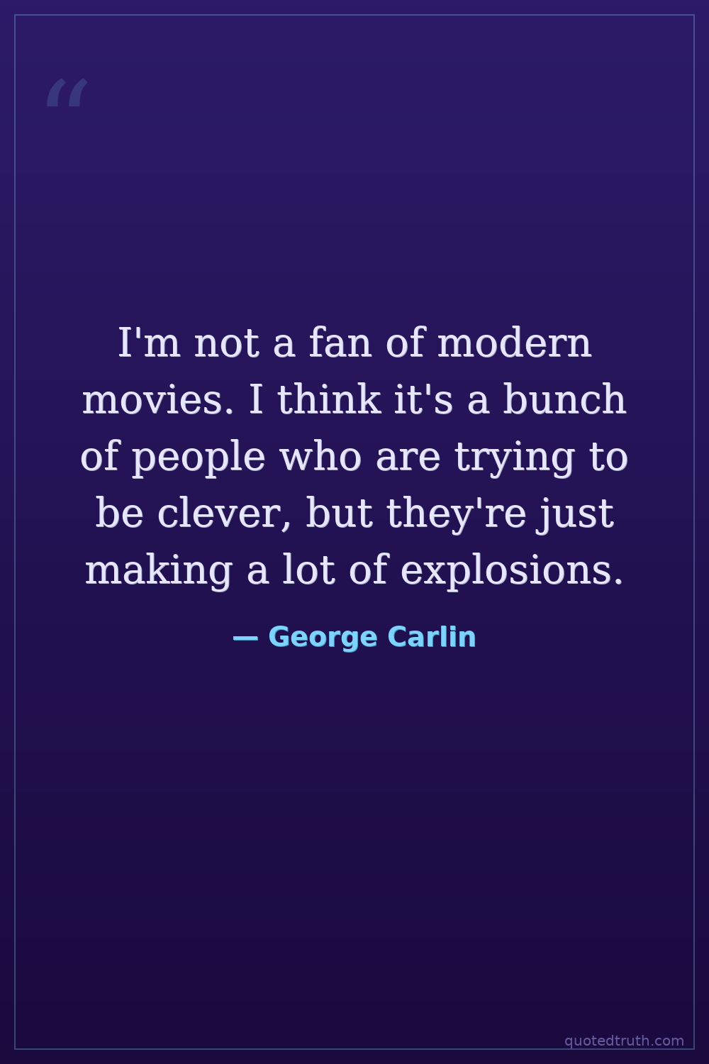 I'm not a fan of modern movies. I think it's a bunch of people who are trying to be clever, but they're just making a lot of explosions.