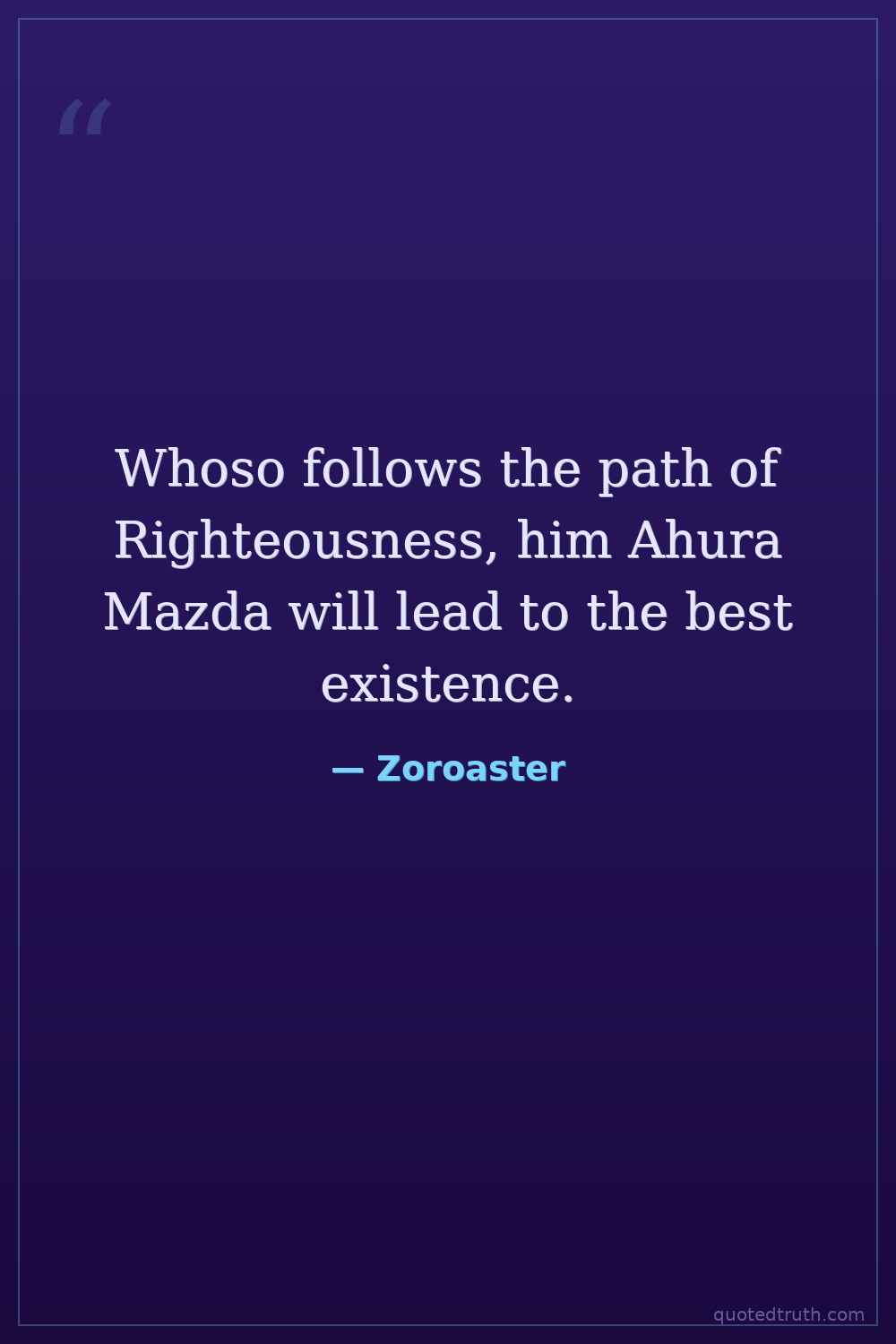 Whoso follows the path of Righteousness, him Ahura Mazda will lead to the best existence.