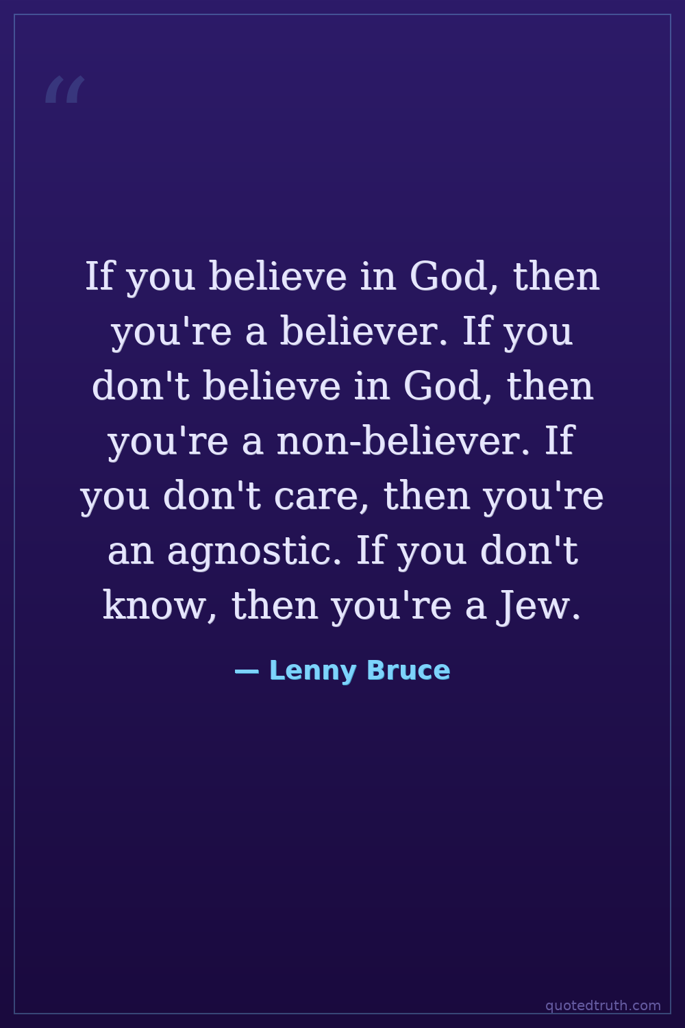 If you believe in God, then you're a believer. If you don't believe in God, then you're a non-believer. If you don't care, then you're an agnostic. If you don't know, then you're a Jew.