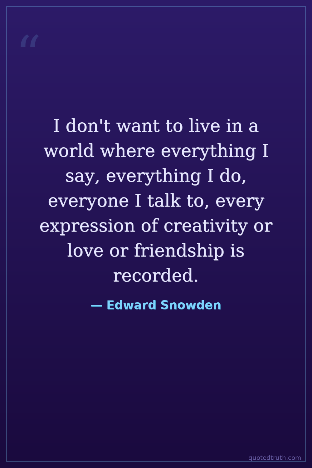 I don't want to live in a world where everything I say, everything I do, everyone I talk to, every expression of creativity or love or friendship is recorded.