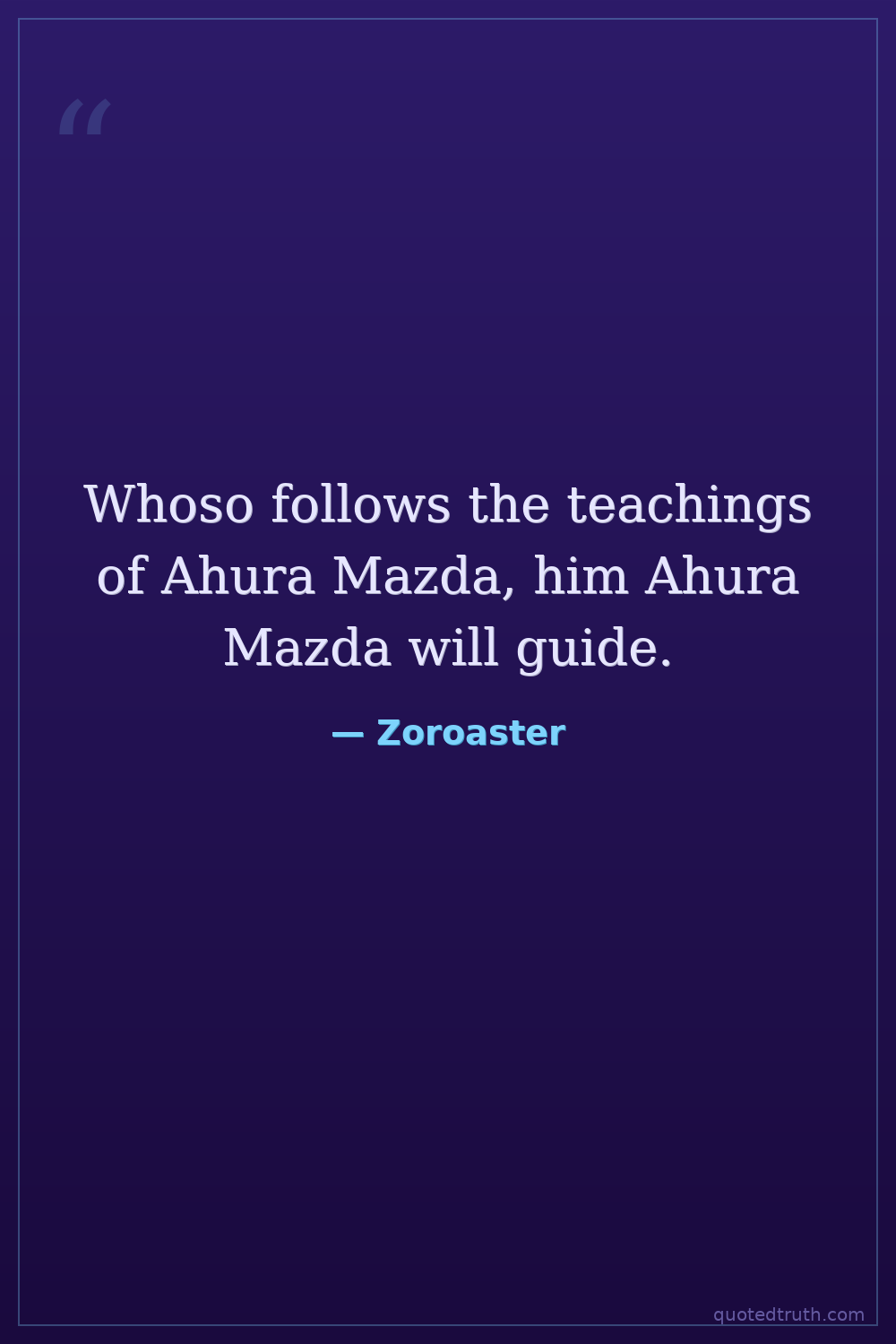 Whoso follows the teachings of Ahura Mazda, him Ahura Mazda will guide.