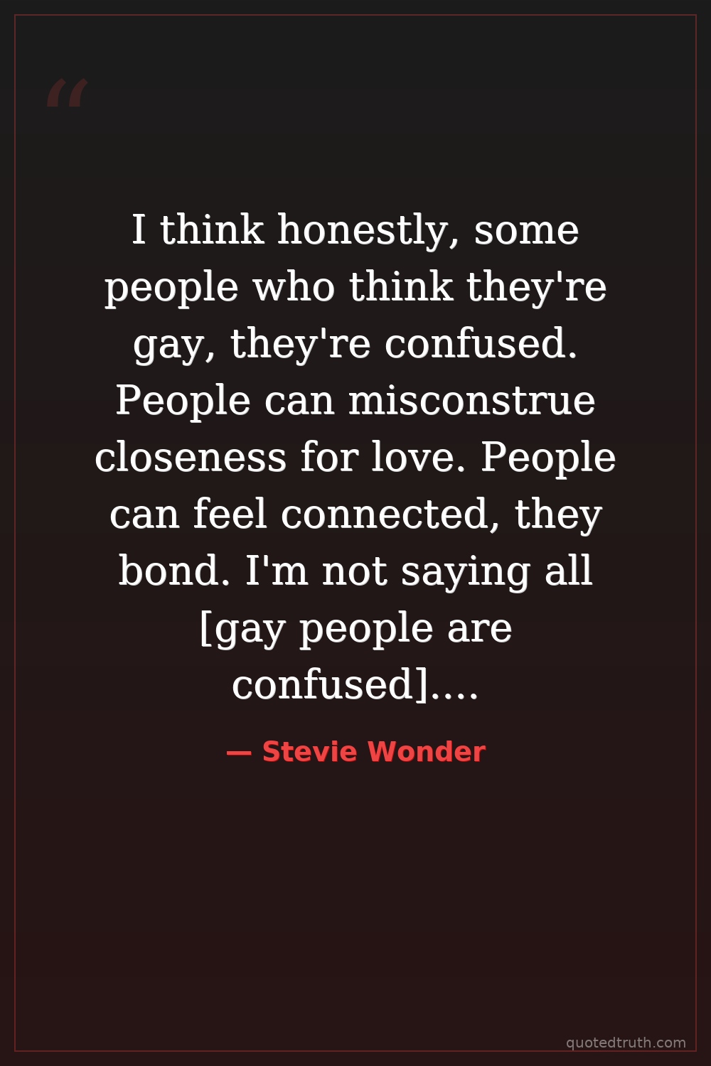 I think honestly, some people who think they're gay, they're confused. People can misconstrue closeness for love. People can feel connected, they bond. I'm not saying all [gay people are confused]. Some people have a desire to be with the same sex. But that's them.