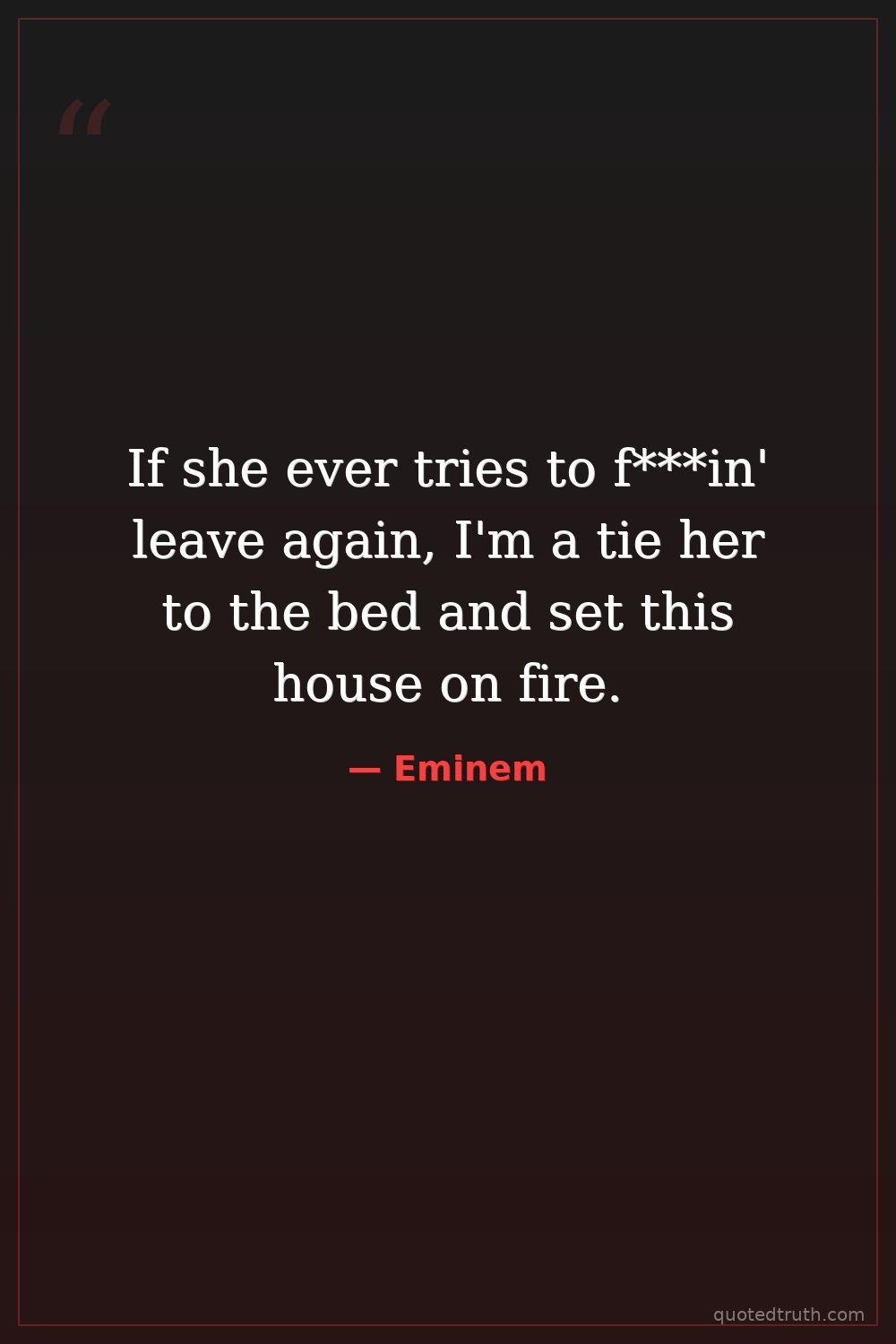 If she ever tries to f***in' leave again, I'm a tie her to the bed and set this house on fire.