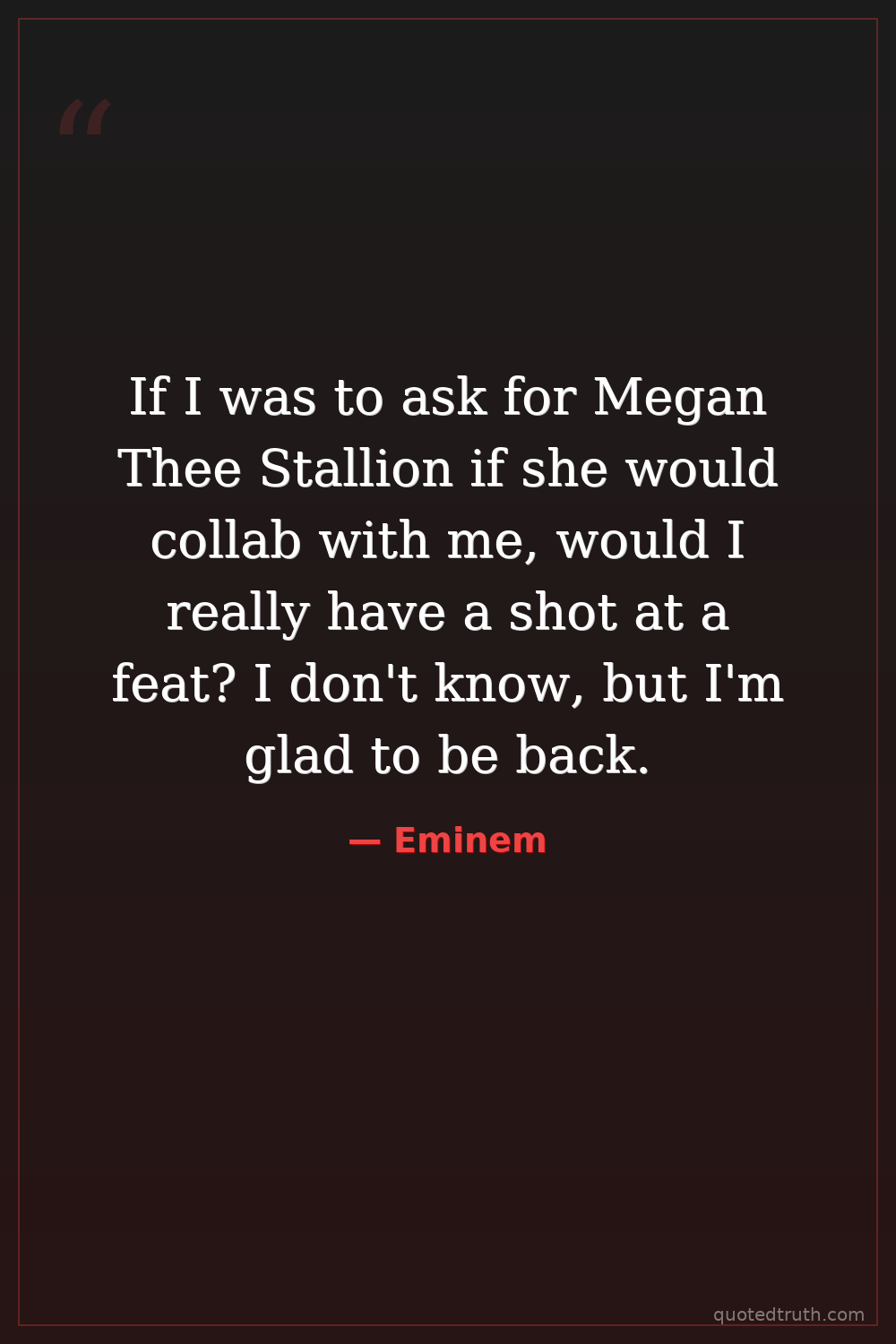 If I was to ask for Megan Thee Stallion if she would collab with me, would I really have a shot at a feat? I don't know, but I'm glad to be back.