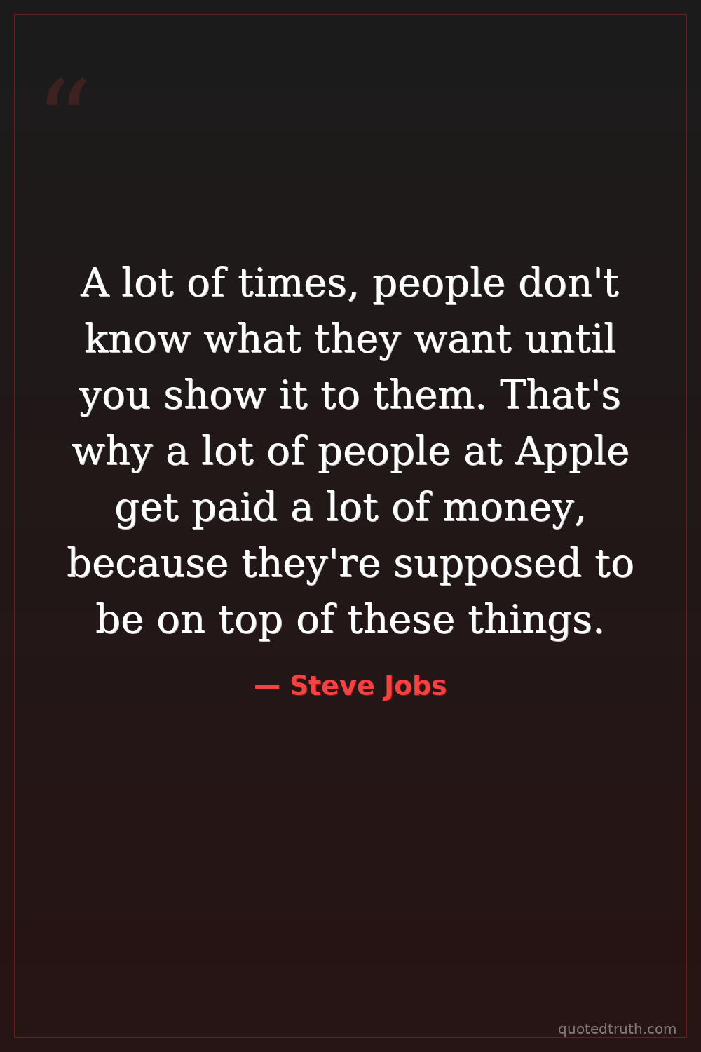 A lot of times, people don't know what they want until you show it to them. That's why a lot of people at Apple get paid a lot of money, because they're supposed to be on top of these things.