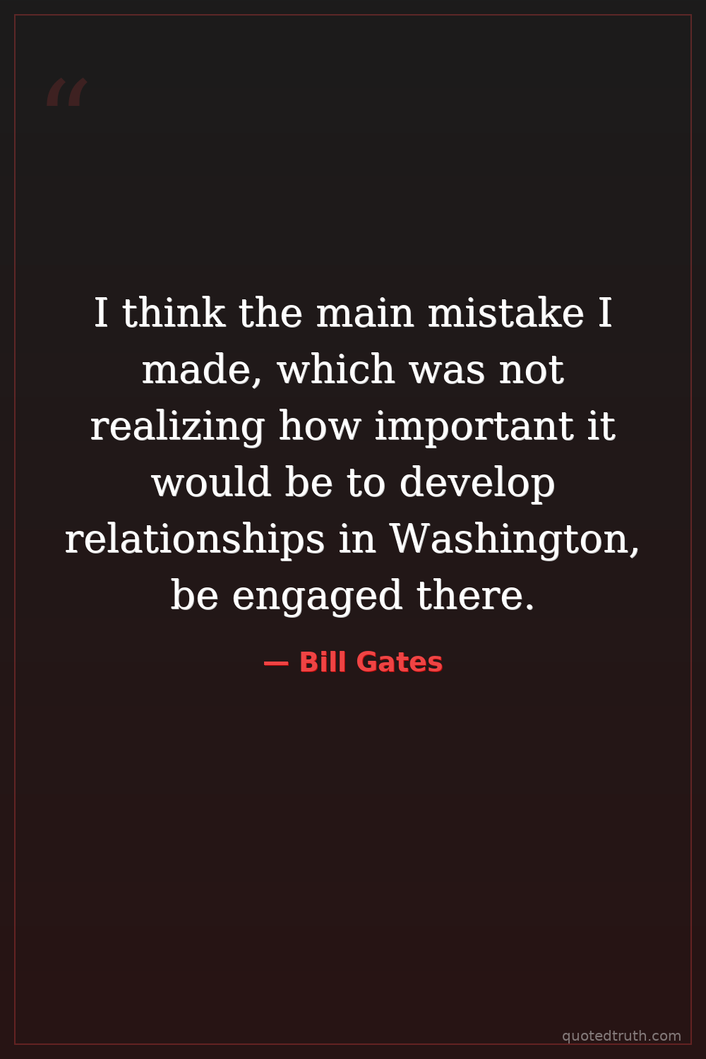I think the main mistake I made, which was not realizing how important it would be to develop relationships in Washington, be engaged there.