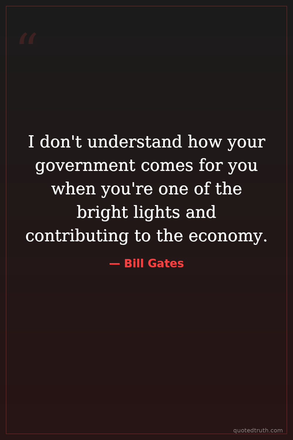 I don't understand how your government comes for you when you're one of the bright lights and contributing to the economy.