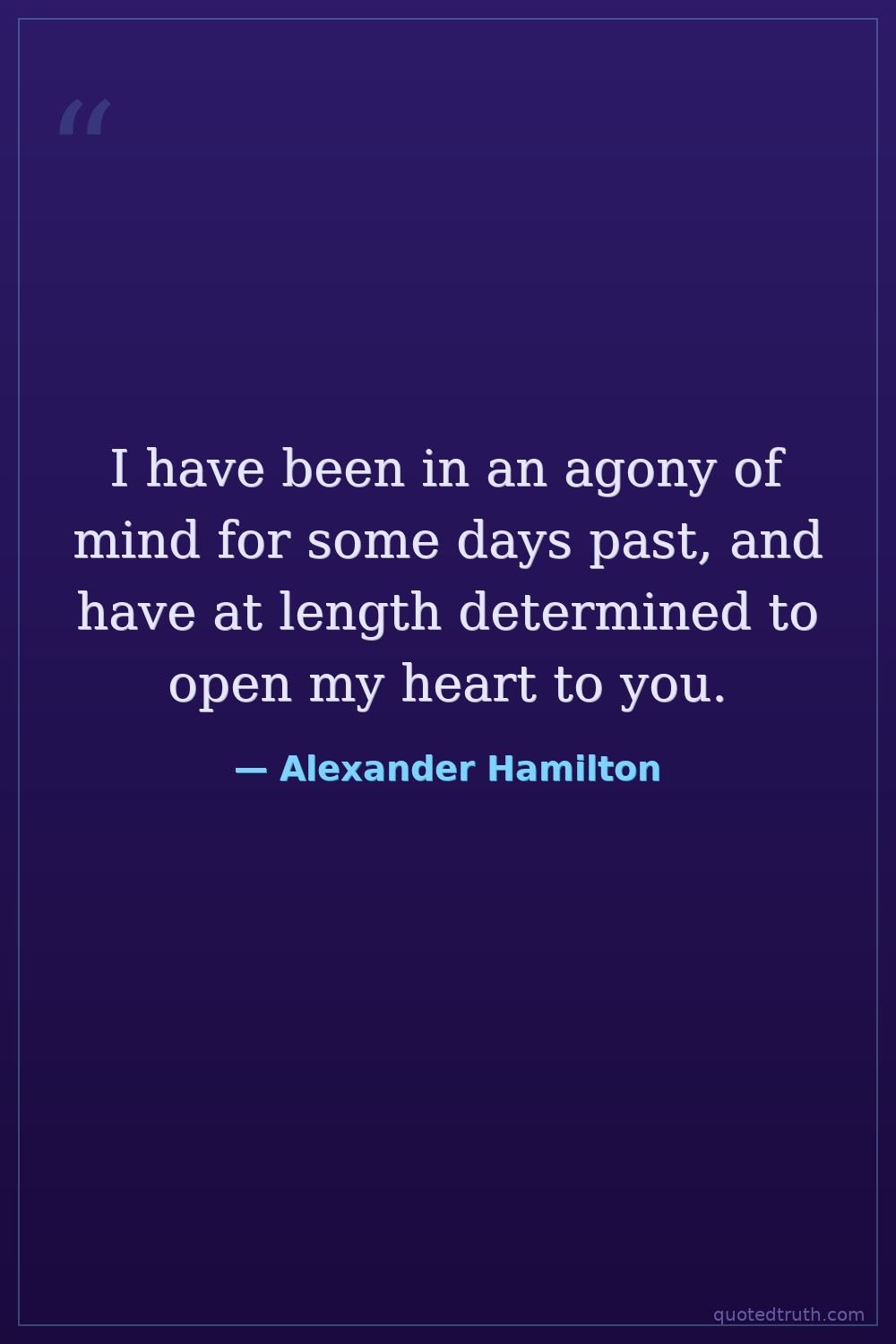 I have been in an agony of mind for some days past, and have at length determined to open my heart to you.