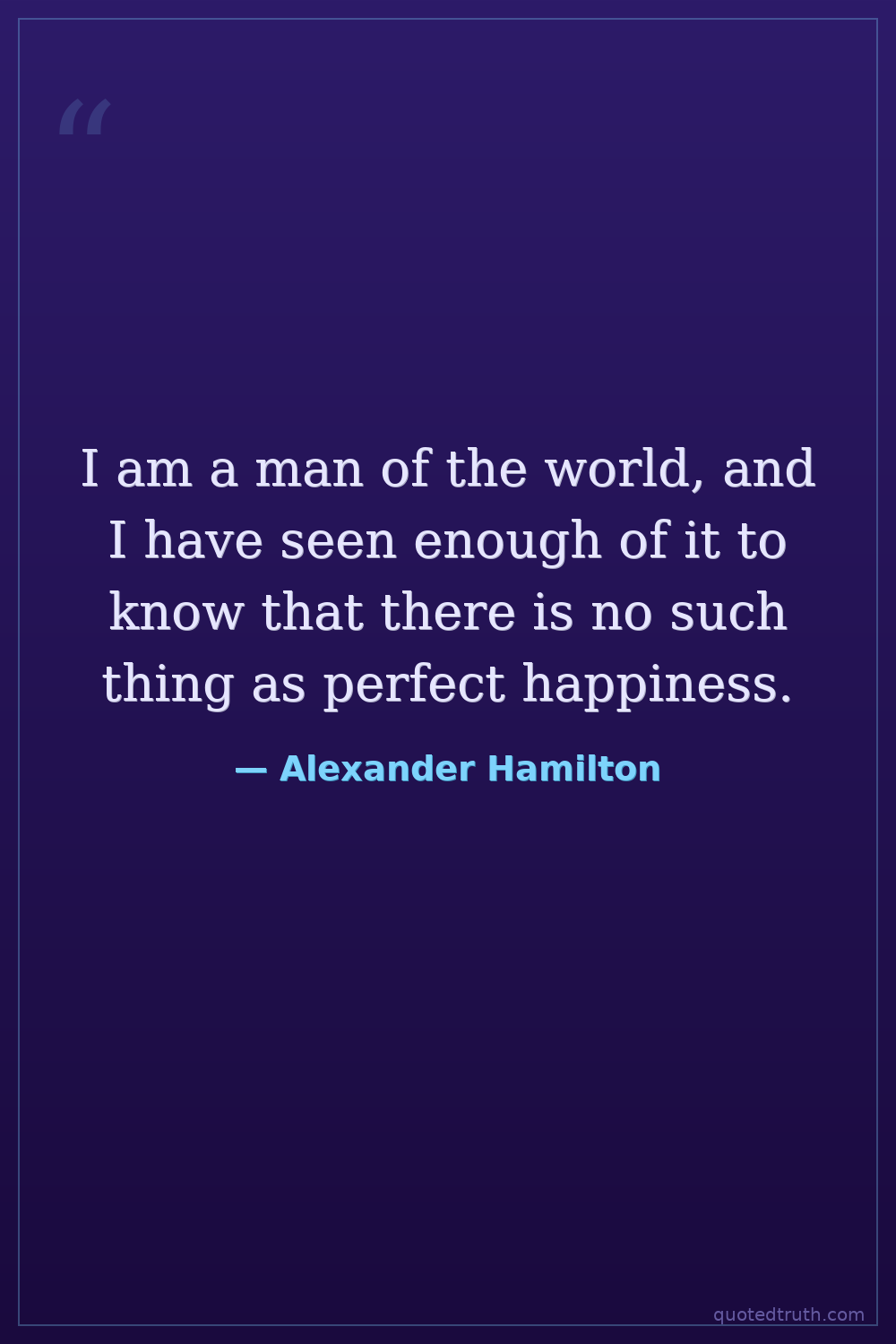 I am a man of the world, and I have seen enough of it to know that there is no such thing as perfect happiness.