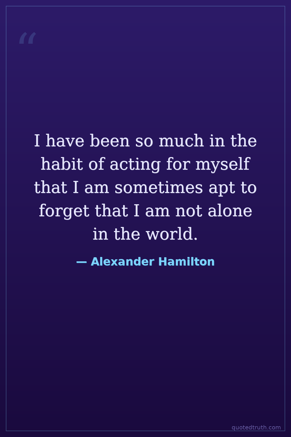 I have been so much in the habit of acting for myself that I am sometimes apt to forget that I am not alone in the world.