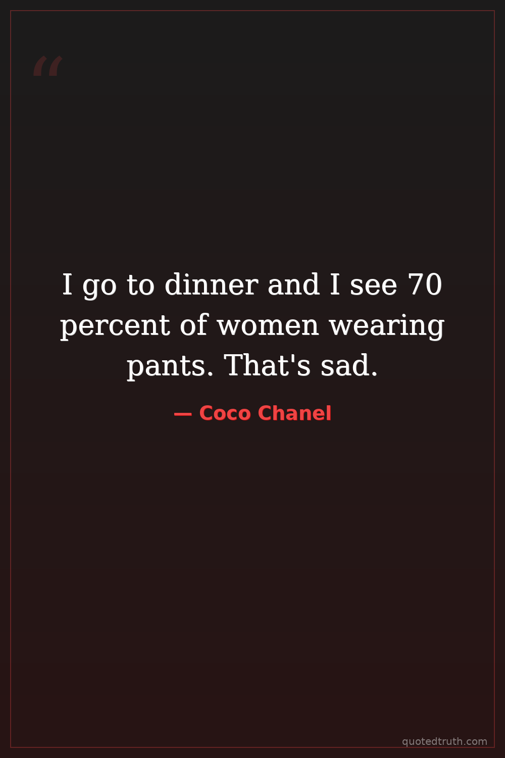 I go to dinner and I see 70 percent of women wearing pants. That's sad.