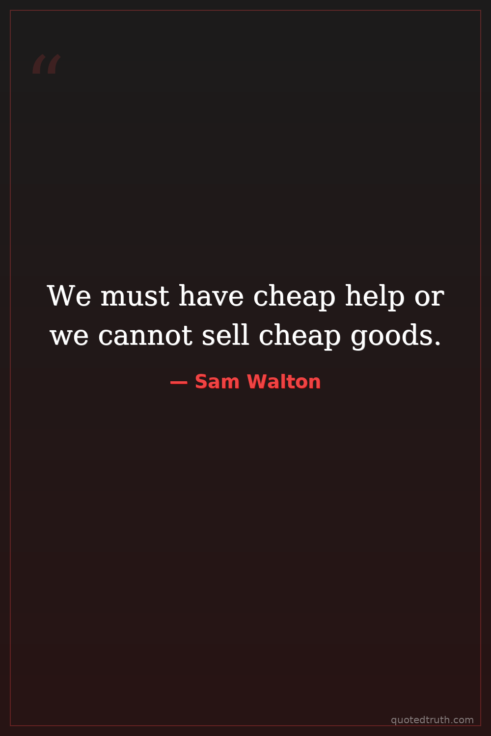 We must have cheap help or we cannot sell cheap goods.
