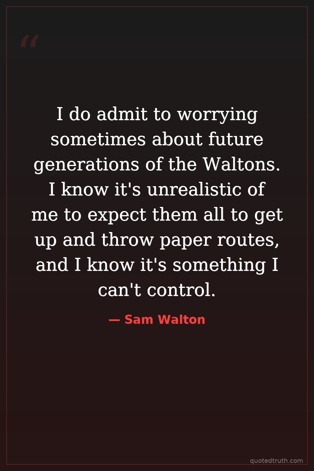 I do admit to worrying sometimes about future generations of the Waltons. I know it's unrealistic of me to expect them all to get up and throw paper routes, and I know it's something I can't control.