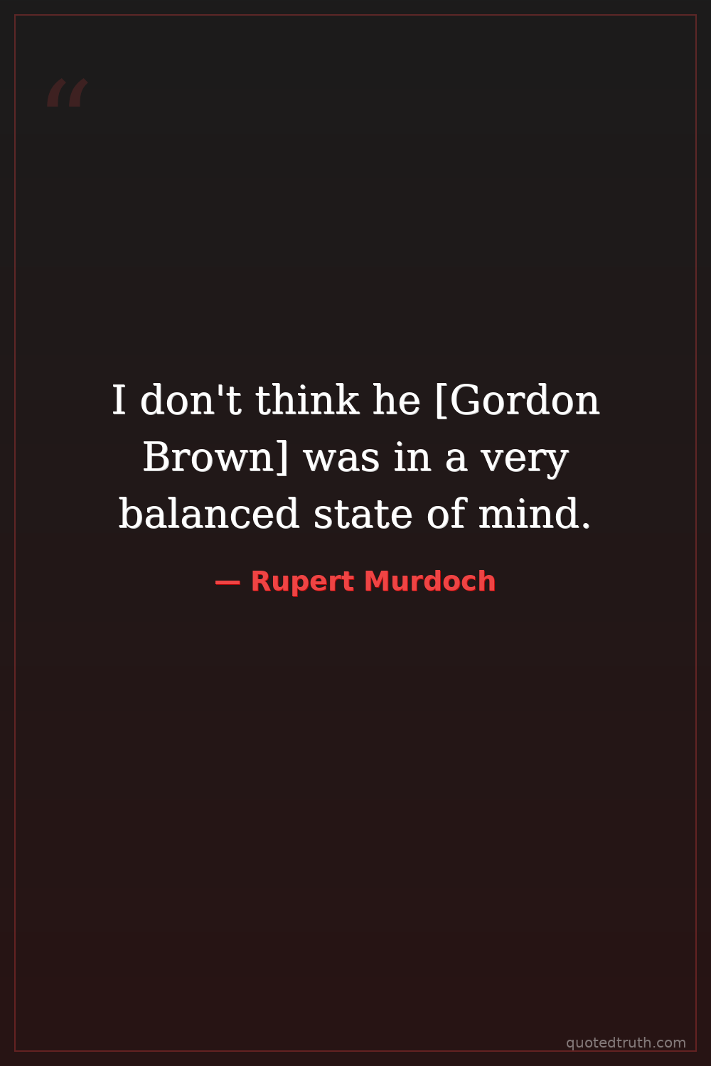 I don't think he [Gordon Brown] was in a very balanced state of mind.