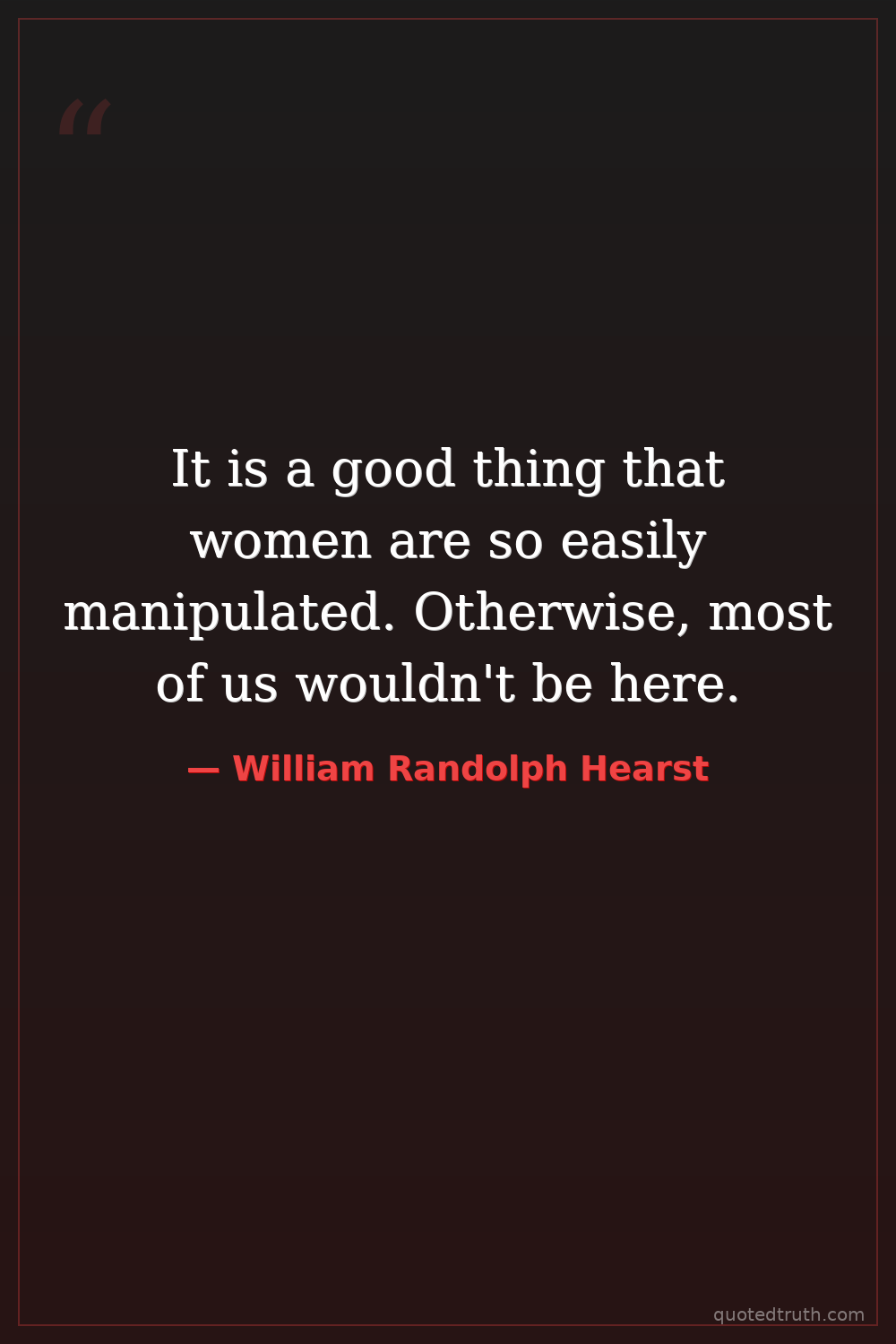 It is a good thing that women are so easily manipulated. Otherwise, most of us wouldn't be here.
