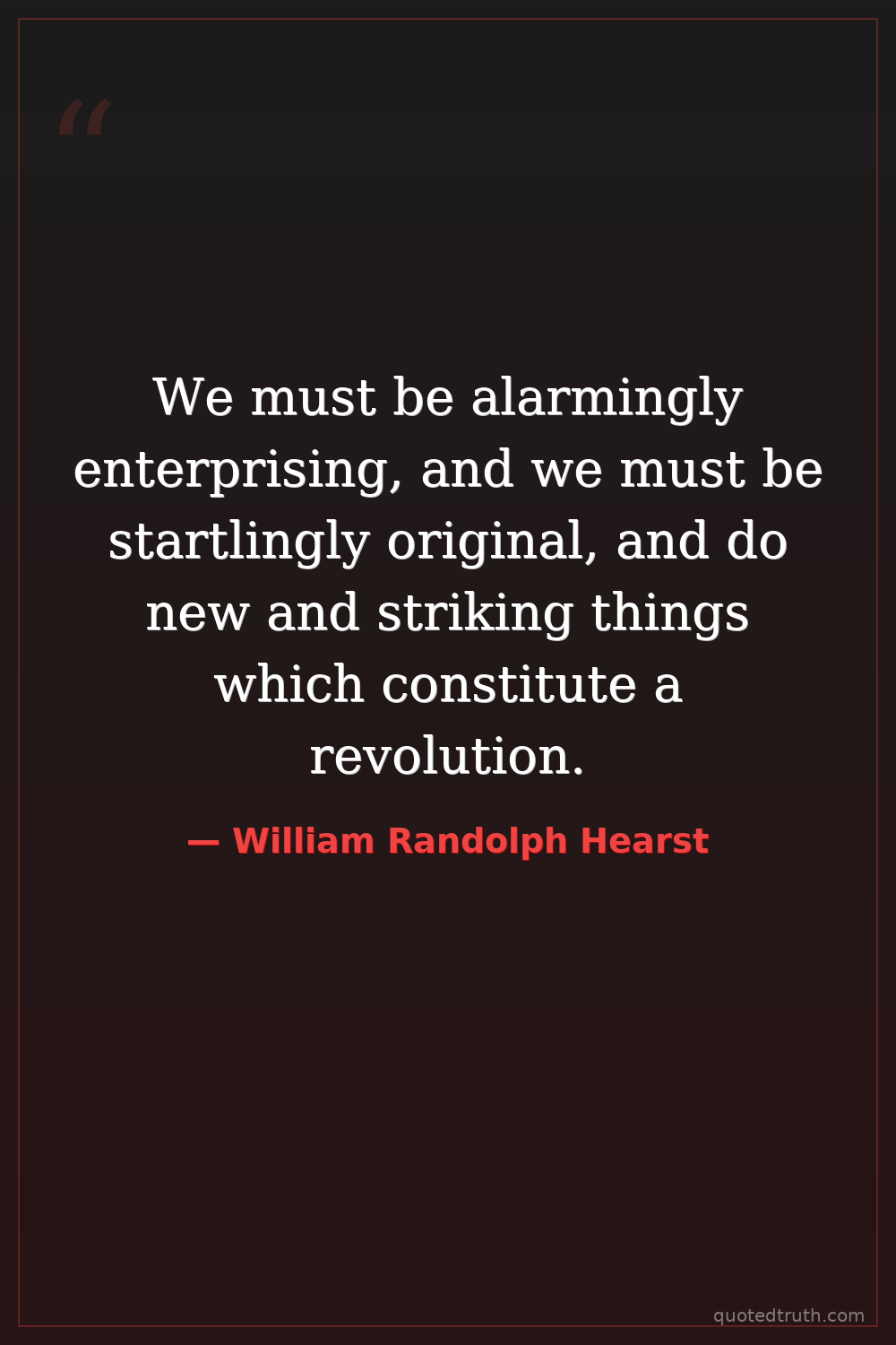 We must be alarmingly enterprising, and we must be startlingly original, and do new and striking things which constitute a revolution.