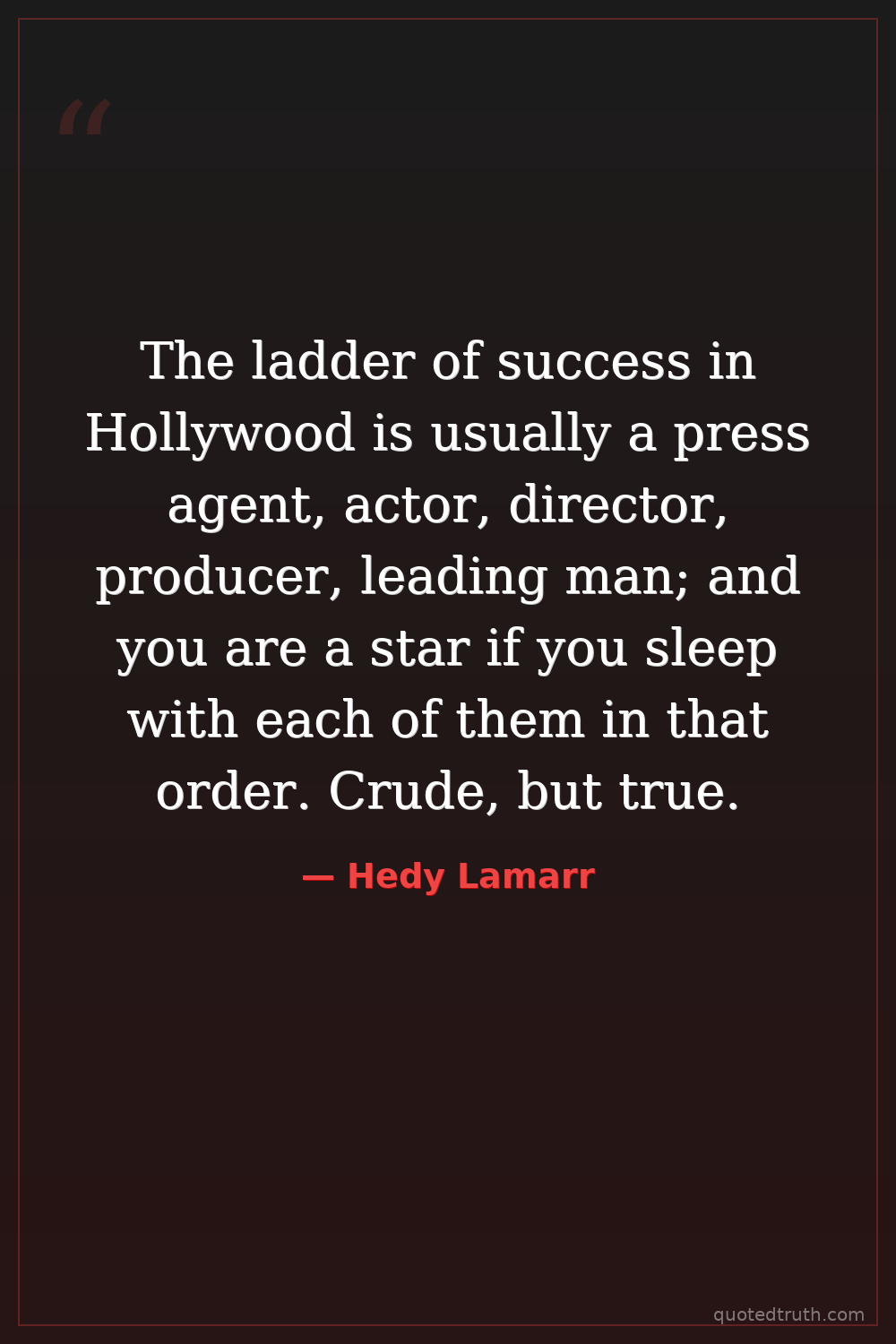 The ladder of success in Hollywood is usually a press agent, actor, director, producer, leading man; and you are a star if you sleep with each of them in that order. Crude, but true.