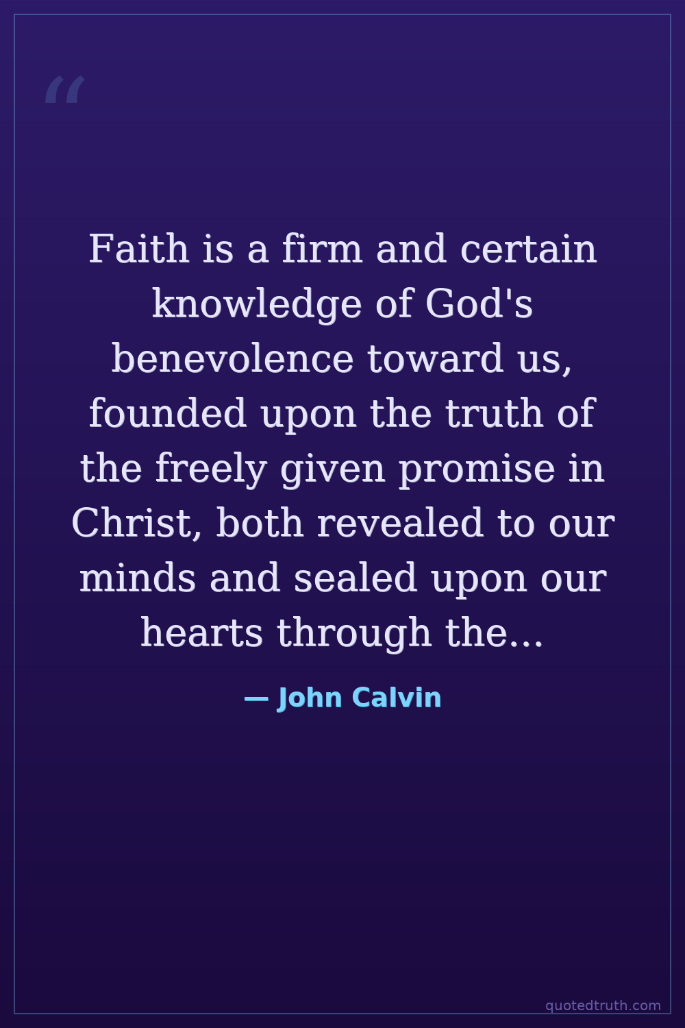 Faith is a firm and certain knowledge of God's benevolence toward us, founded upon the truth of the freely given promise in Christ, both revealed to our minds and sealed upon our hearts through the Holy Spirit.